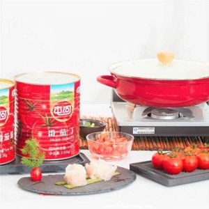 應(yīng)季鮮番茄直灌:應(yīng)季新鮮、成熟的優(yōu)質(zhì)屯河番茄經(jīng)清洗、挑揀、燙漂、切丁/ 去皮后,浸漬在濃郁番茄原汁中經(jīng)灌裝殺菌工藝加工而成。