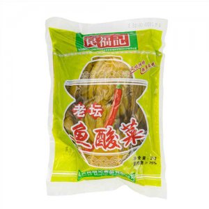 老壇魚酸菜。嚴選四川盆地大葉芥菜,古法老壇泡漬而成,口味酸爽、勁道。配餐、佐食、煮魚不二之選。