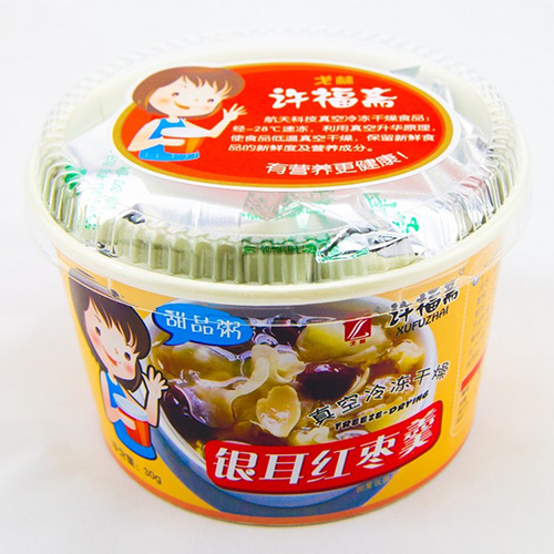 配料:大米、棕櫚油(含維生素E)、白砂糖、醋酸酯淀粉、銀耳、紅棗、枸杞子、紅棗汁