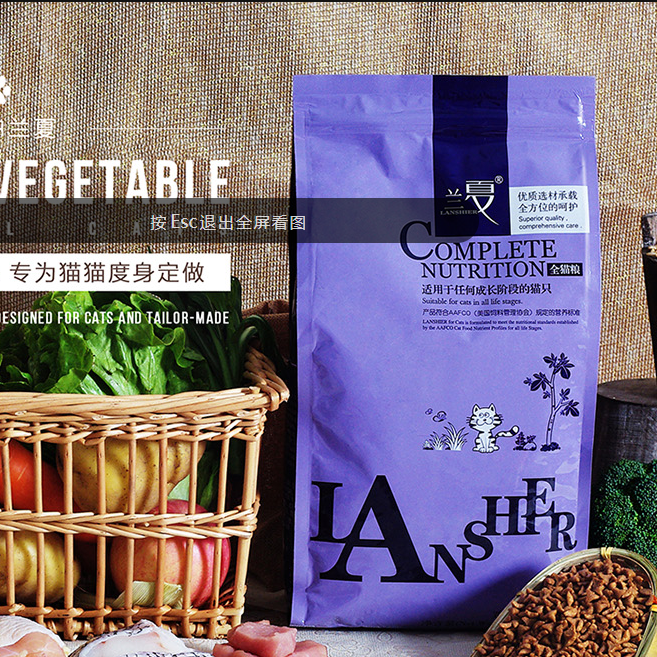 江門市與天寵物用品有限公司主打產(chǎn)品蘭夏雞肉魚蔬菜全貓糧。