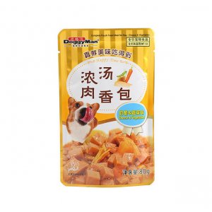 上海斐陽商貿(mào)有限公司主打產(chǎn)品多格漫濃湯肉香包貓犬80g*12。