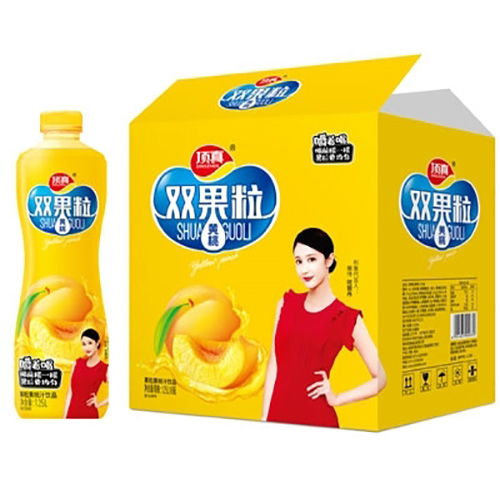 鄭州市頂真食品有限公司主打產(chǎn)品頂真果粒黃桃汁飲品1.25升X6瓶。