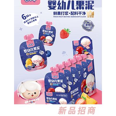 香港金升緣實業(yè)集團有限公司主打產(chǎn)品宅羊羊嬰幼兒果泥三種口味鮮水果投放酸甜可口四層鎖鮮膜工藝。