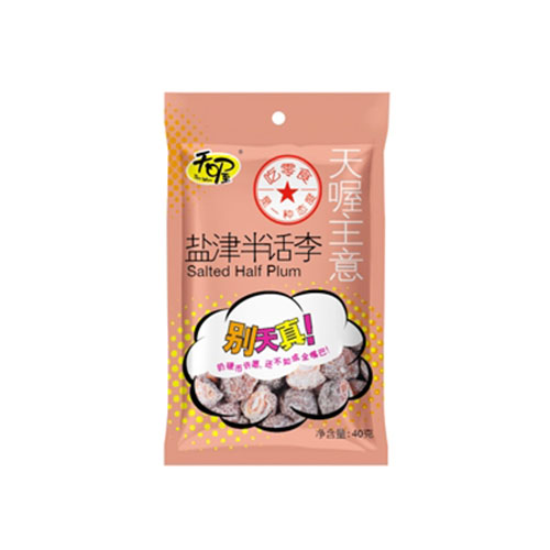 中山福禮食品有限公司主打產(chǎn)品天喔鹽津半話李40g。